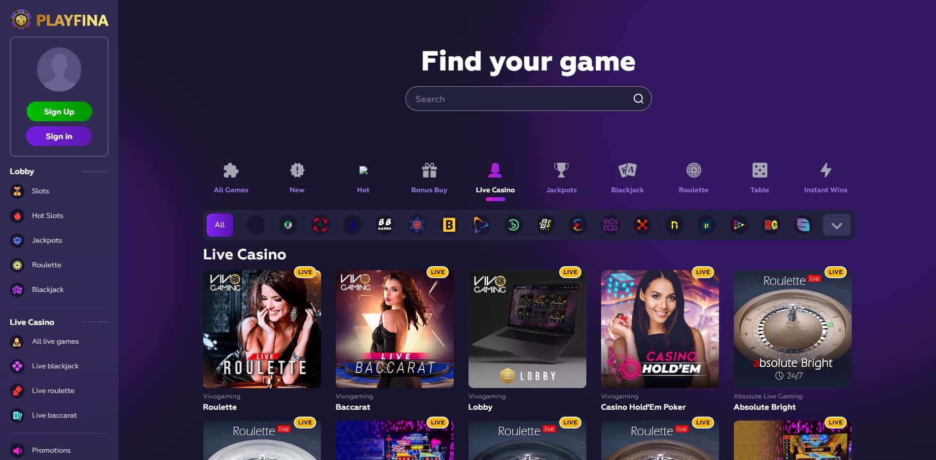 More than 11,000 slots, all varieties of blackjack, dozens of roulette games, craps, video poker, and other games are available to you at Playfina casino online Exploring Playfina - Analyzing the Gaming Experience in Depth! Play the Best Online Casino Games at Playfina ✓ Try Slots, Blackjack, Roulette, Craps and Video Poker with Huge Bonuses. Playfina Casino How to Start Up to 1000€ + 200 FS + Secret Bonus... Playfina Casino - Bonus Codes – 50 Free Spins!